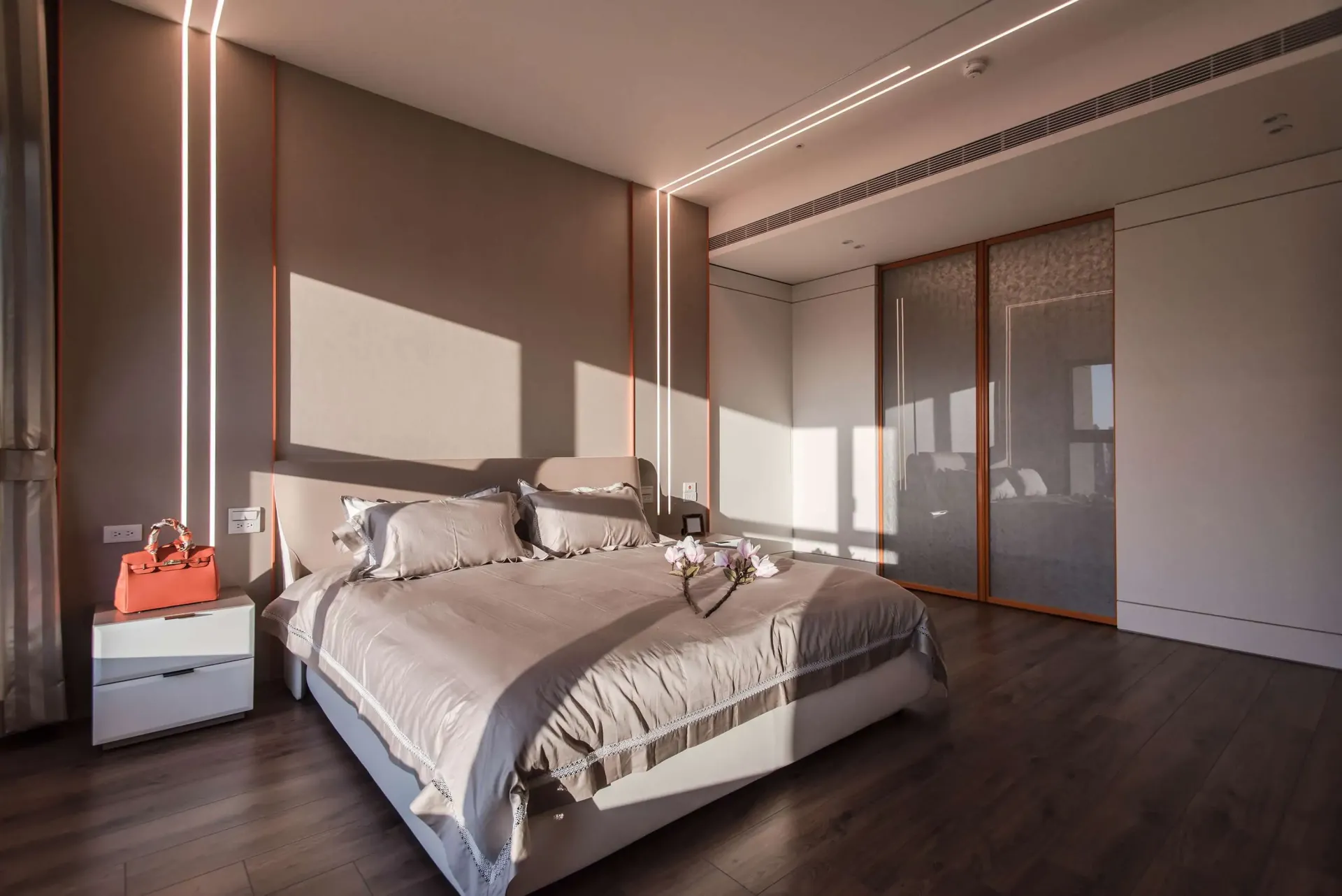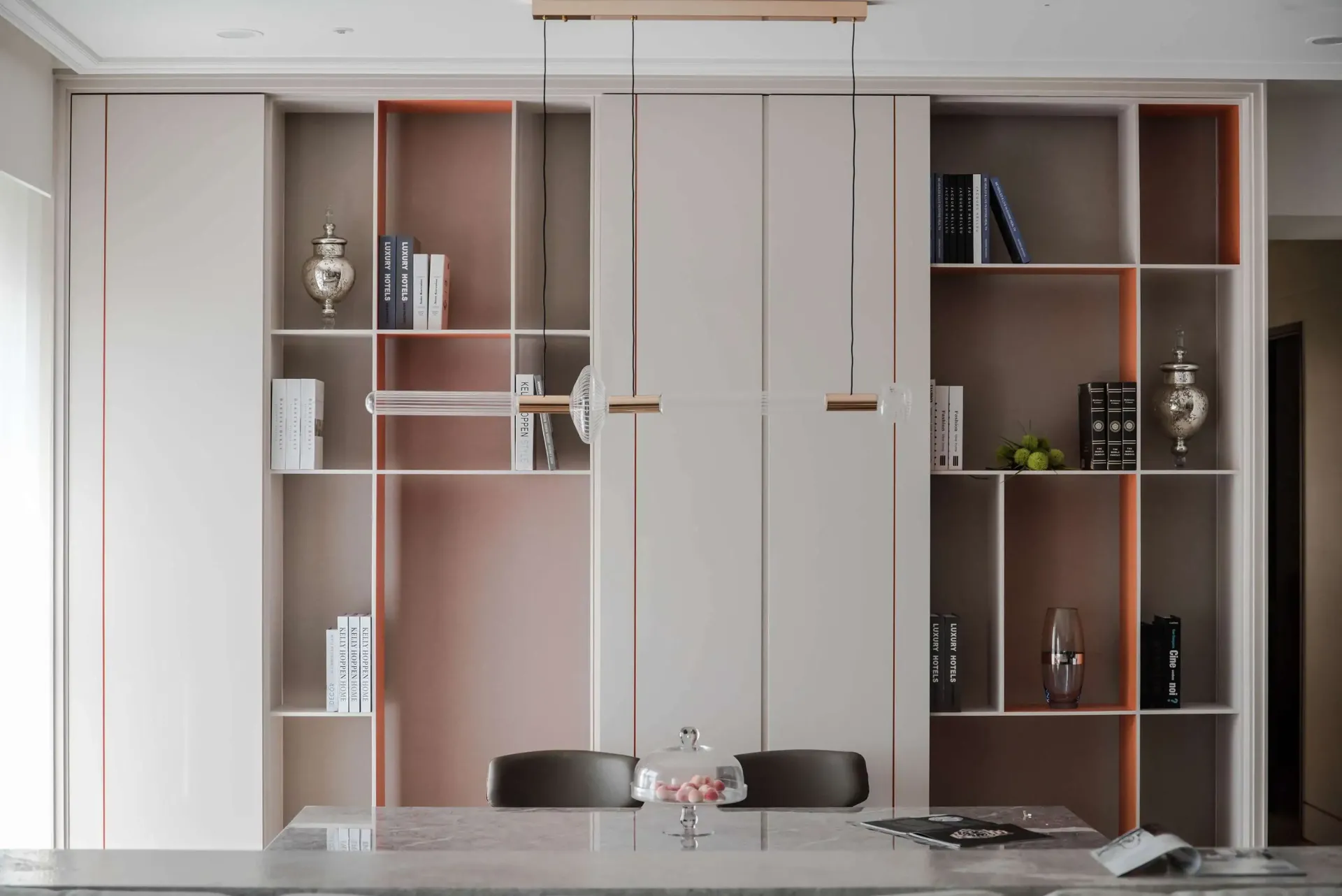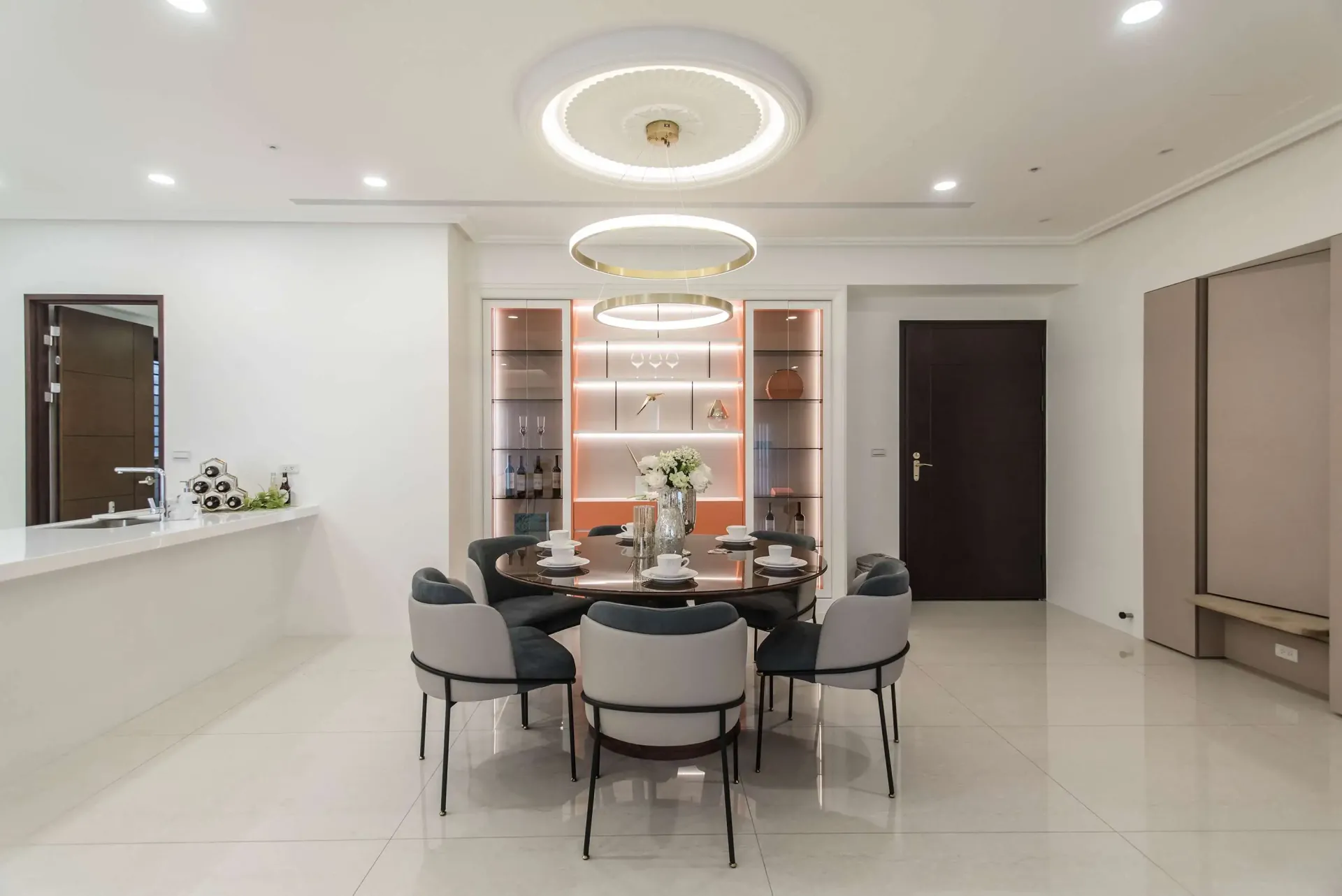 黃子溱 2022 MUSE Design Award 金獎得獎作品《品陽大苑》榮獲金獎的《品陽大苑》展現了高雅的品味,在寬敞的公共和私人區域塗上橙色皮革漆,營造出明亮、和諧、舒適的色調。留下適當的空白,利用線性和圓角的特點,塑造出如一幅畫般的藝術魅力,也方便業主本身對於未來的不同規劃。在內部立面和櫥櫃上塗上一點大地顏色的橙色系烤漆,以產生出豐富的層次感,並且選擇了同色系的燈飾,彰顯這幢豪宅的清新精神、傳遞能夠留存悠遠的時尚氣息。